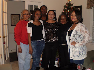 Here is a pic with me and my family at Christmas (From left to right: my grandma, me, my cousin, my mommy, my aunt, and my little sis)